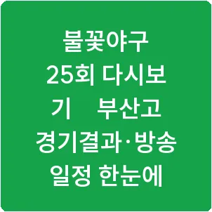 불꽃야구 25회 다시보기|부산고 경기결과·방송 일정 한눈에