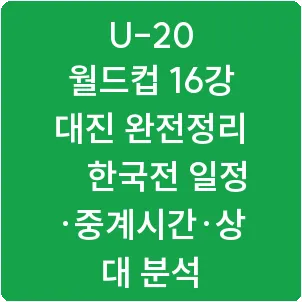U-20 월드컵 16강 일정이 헷갈리시죠? 한국 경기 시간, 상대팀 정보, 중계 채널을 한눈에 정리했습니다. 어디서 언제 봐야 할지 고민 끝! 지금 클릭하면 한국 U-20 대표팀의 8강 진출 가능성과 핵심 포인트까지 빠르게 확인할 수 있습니다.